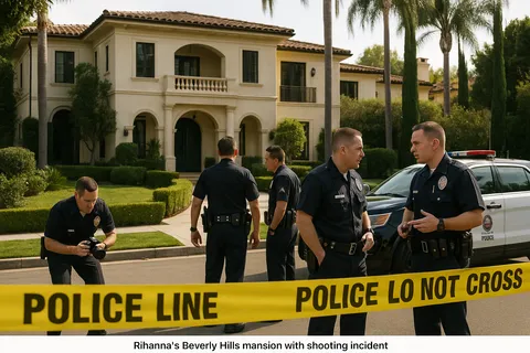 Breaking News: In a shocking turn of events, Rihanna's Beverly Hills mansion was reportedly fired upon by a female suspect from her vehicle. Thankfully, no injuries were reported, but police are inves...